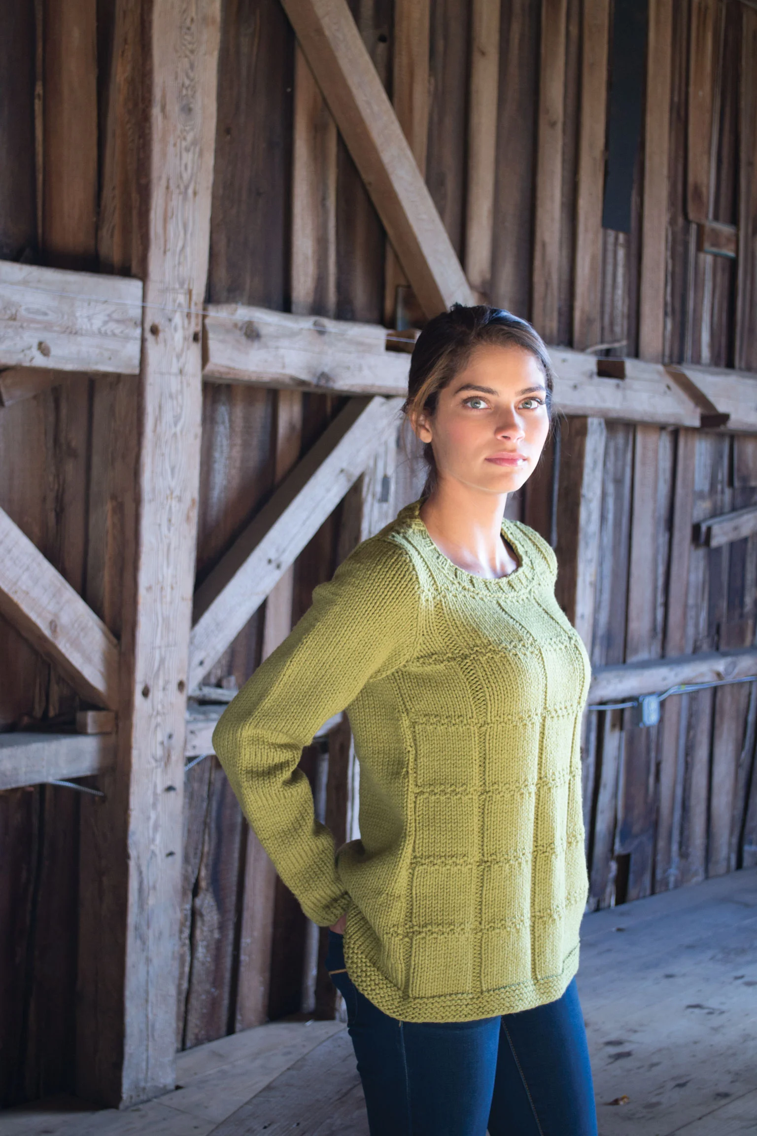 The Maine I know is filled with utility. I've been to at least one wedding where LLBean boots were acceptable attire because of the mud we all knew we'd be dancing in. This sweater matches that sentiment exactly. Its stitch pattern is reminiscent of a plaid shirt, a staple here. It's a-line shape is flattering yet comfortable and in Quince & Co. Osprey, it knits up fast!
